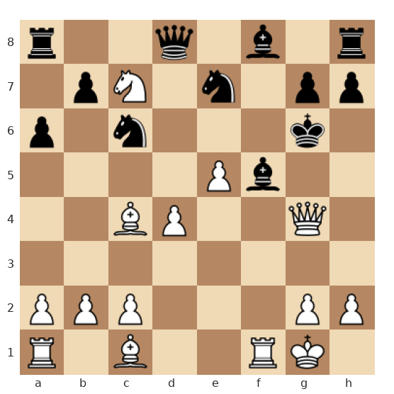 Les Blancs ont leurs pièces idéalement coordonnées autour du roi noir affaibli : le fou noir f8 et le cavalier e7 sont mal placés pour défendre, et les cases autour du roi noir sont fragiles. En exploitant la diagonale vers g4 et la faiblesse des cases noires autour du roi, les Blancs disposent d’une combinaison forcée menant au mat en deux coups.