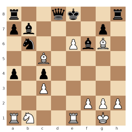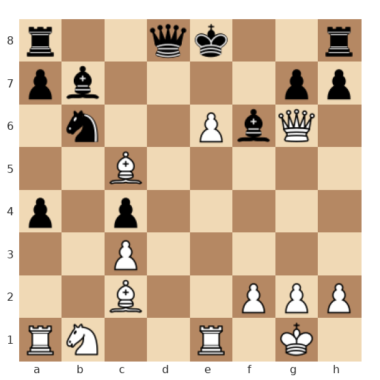 Les Blancs ont leurs pièces lourdement dirigées vers le roi noir resté au centre : la dame blanche est en f5, un fou puissant contrôle les diagonales depuis c5, l’autre fou vise le roque noir, et le roi noir est encore en e8, mal protégé. Les Noirs viennent de sous-estimer le danger, et les Blancs ont maintenant l’occasion de lancer une combinaison décisive menant à un mat forcé.