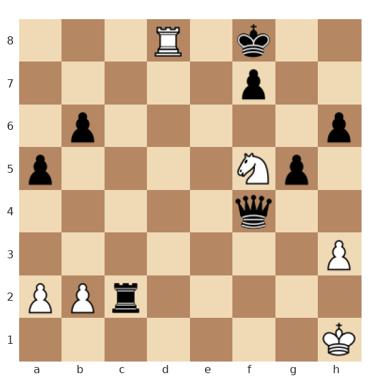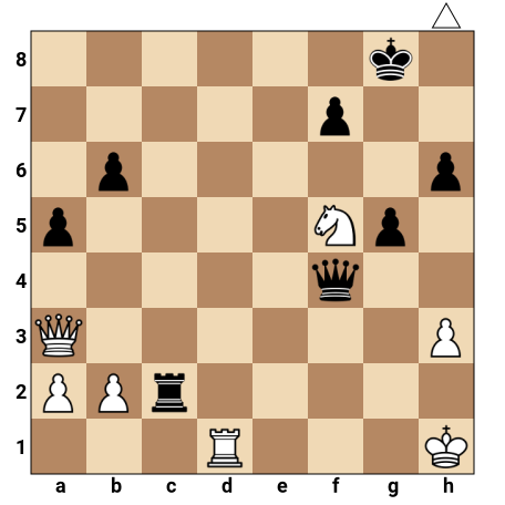 Les Blancs ont une dame active en a3, une tour en d1 et un cavalier avancé en f5, menaçant le roi noir exposé en g8. Les Noirs possèdent une dame agressive en f4 et quelques pions autour de leur roi, mais aucune pièce lourde proche pour défendre efficacement. C’est au tour des Blancs de jouer et de trouver un mat forcé en deux coups.