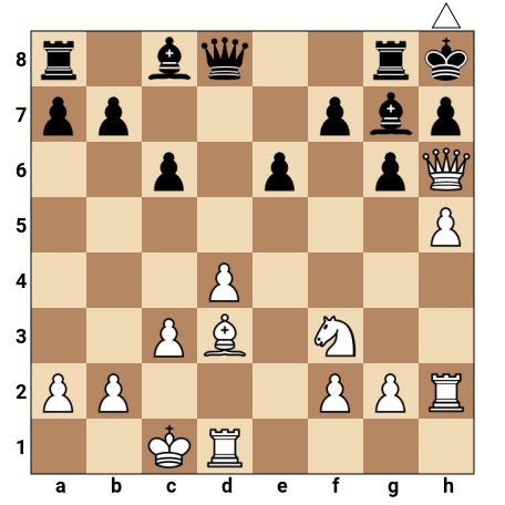 Les Blancs ont une forte attaque contre le roi noir déjà roqué côté roi. Leur dame est en h6, très proche du roi adverse, soutenue par un solide centre de pions et des pièces bien coordonnées. Les Noirs ont leurs pièces un peu passives autour de leur roi et manquent de cases de fuite. Dans cette position, les Blancs disposent d’un sacrifice de dame forcé qui conduit à un mat imparable en deux coups.