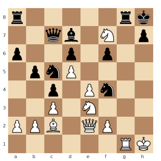 Les Blancs ont une forte attaque contre le roi noir coincé en h8. Le fou noir en c7 et les pièces lourdes défensives semblent bien placés, mais la coordination des cavaliers blancs et de la tour sur la colonne g permet de lancer un sacrifice décisif pour ouvrir les lignes autour du roi.