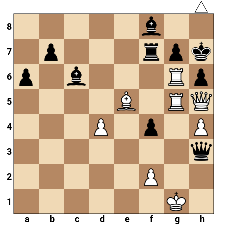 Les Blancs ont leurs pièces lourdes braquées sur le roi noir affaibli : la tour en g5 et la dame en h5 menacent déjà l’aile-roi. Le fou blanc en e5 soutient l’attaque, tandis que le fou noir f8 et la tour f7 tentent de défendre. Le pion noir f4 empêche momentanément l’accès direct de la dame blanche, mais la structure autour du roi noir est fragile. C’est au tour des Blancs de jouer et de conclure par un mat forcé.