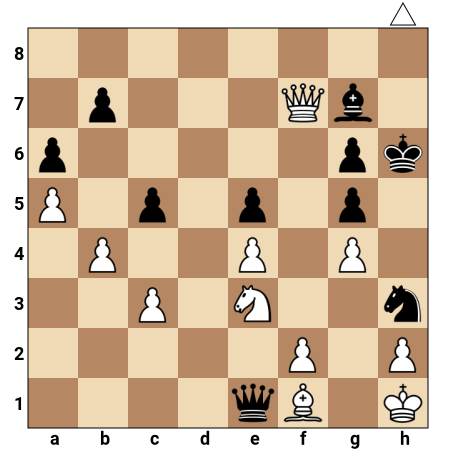 Les Noirs capturent le cavalier avec le pion g. C’est la seule façon d’éliminer immédiatement l’échec et la menace directe, mais ce coup affaiblit encore davantage la couverture du roi noir et ouvre la colonne g ainsi que les cases autour du roi.