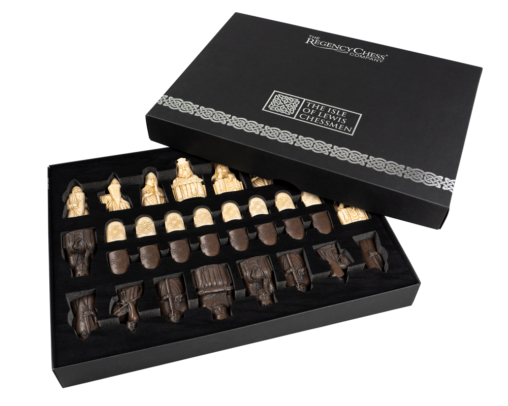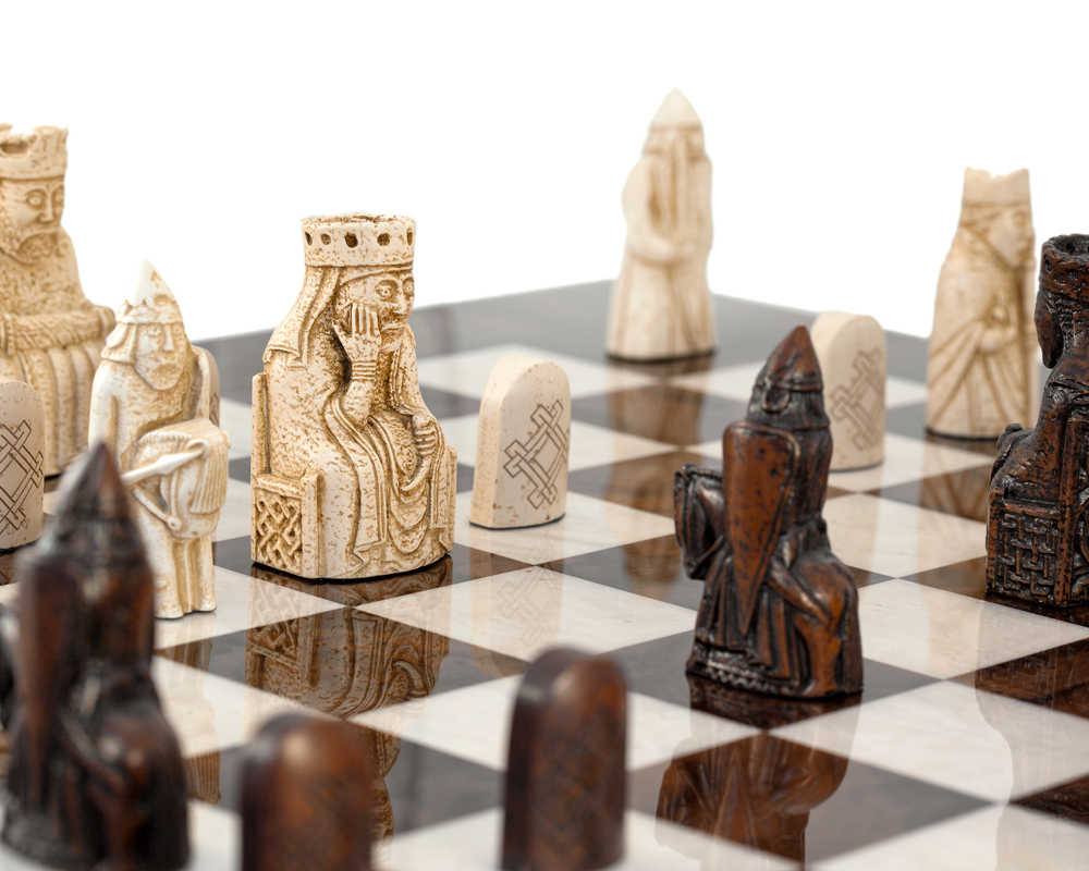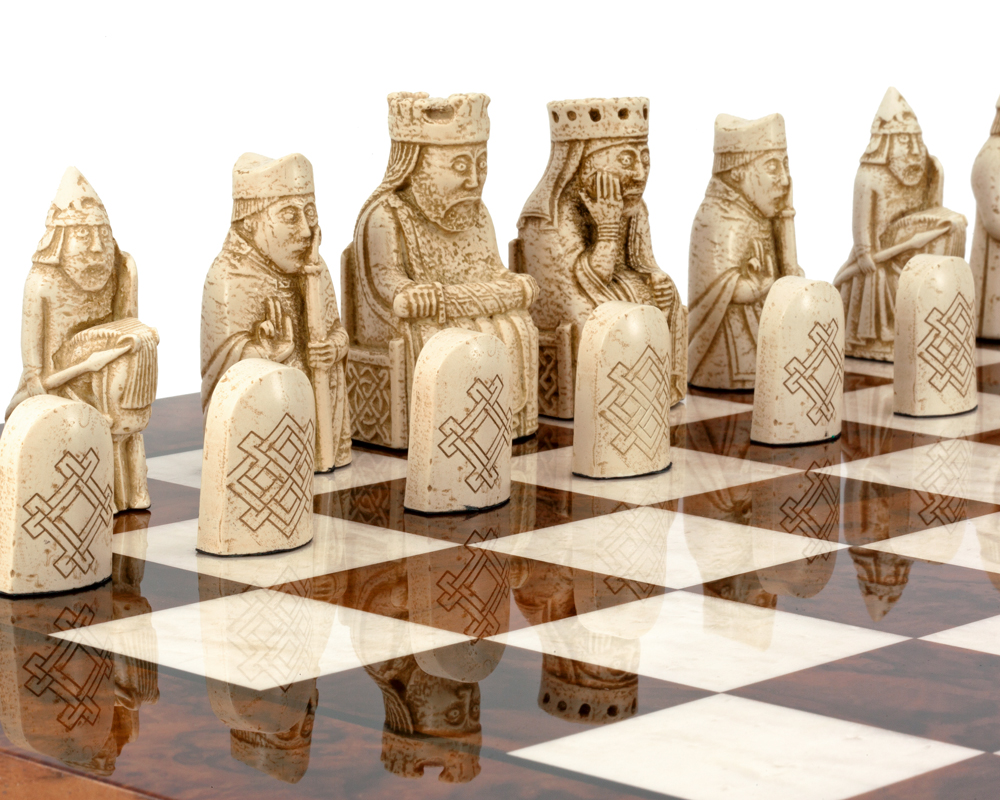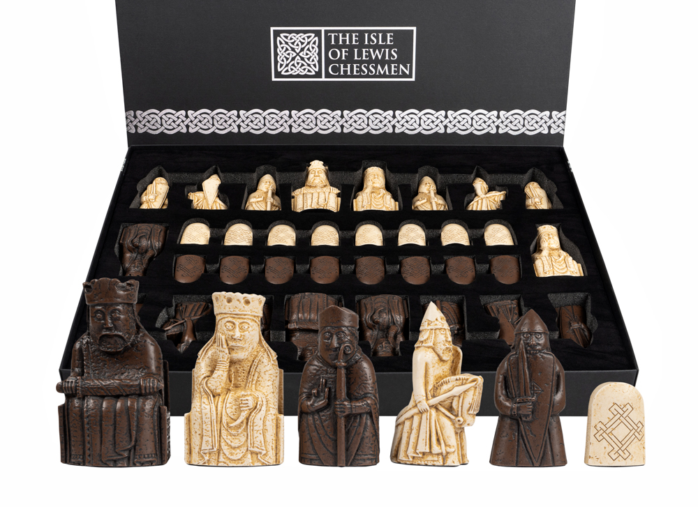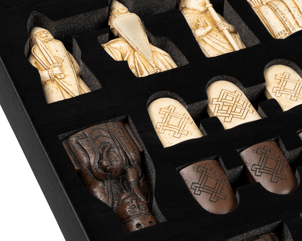 Les pièces, fabriquées au Royaume-Uni sont conçues en résine pour un rendu authentique et durable. Elles reprennent dans les moindres détails les célèbres figures découvertes en 1831 sur l’île écossaise, aujourd’hui considérées comme l’un des modèles les plus emblématiques de l’histoire des échecs.