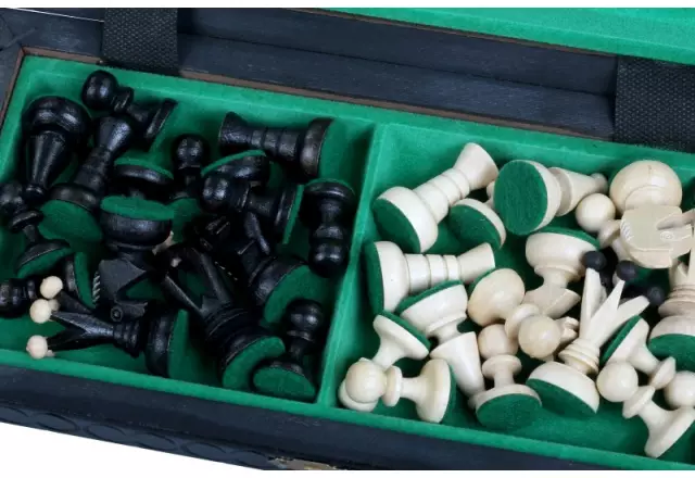 Découvrez le plus petit modèle de notre série d’échecs, un ensemble bien pratique. Avec sa taille compacte, il s’impose comme l’un des jeux les plus populaires et abordables pour les amateurs. Son échiquier pliant en bois de hêtre et de bouleau, poli et orné de cases peintes à la main en noir et ivoire, est doublé de feutre à l’intérieur pour un rangement sécurisé des pièces. Les cases foncées, teintées en noir profond, apportent un contraste raffiné et intemporel.