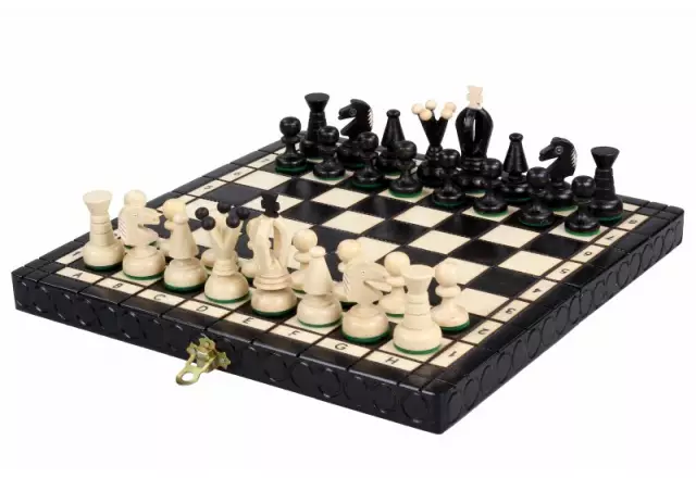 Petit Ensemble de Jeu d’Echecs Pliable en Bois Noir et Ivoire 30 x 30 cm